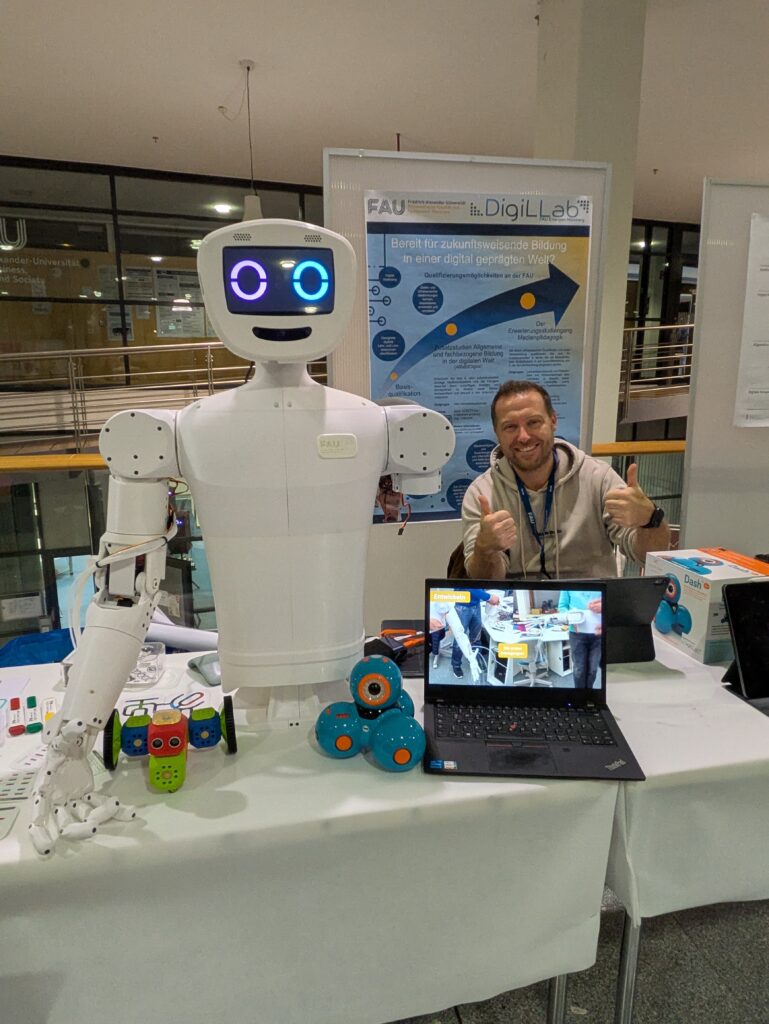 Karsten Golze und Dr. Melanie Stephan präsentierten dort praxisnahe Einblicke in die Welt der digitalen Bildung: Besucherinnen und Besucher testeten begeistert kleine Lernroboter, lösten Quizfragen rund um Medienbildung und Künstliche Intelligenz, und schärften ihren Blick für KI-generierte Bilder. Zum interessierten Publikum gehörten u.a. Eltern mit ihren Kindern, Studierende und Lehrkräfte. Viele nutzten die Gelegenheit viele ihrer Fragen zu stellen.